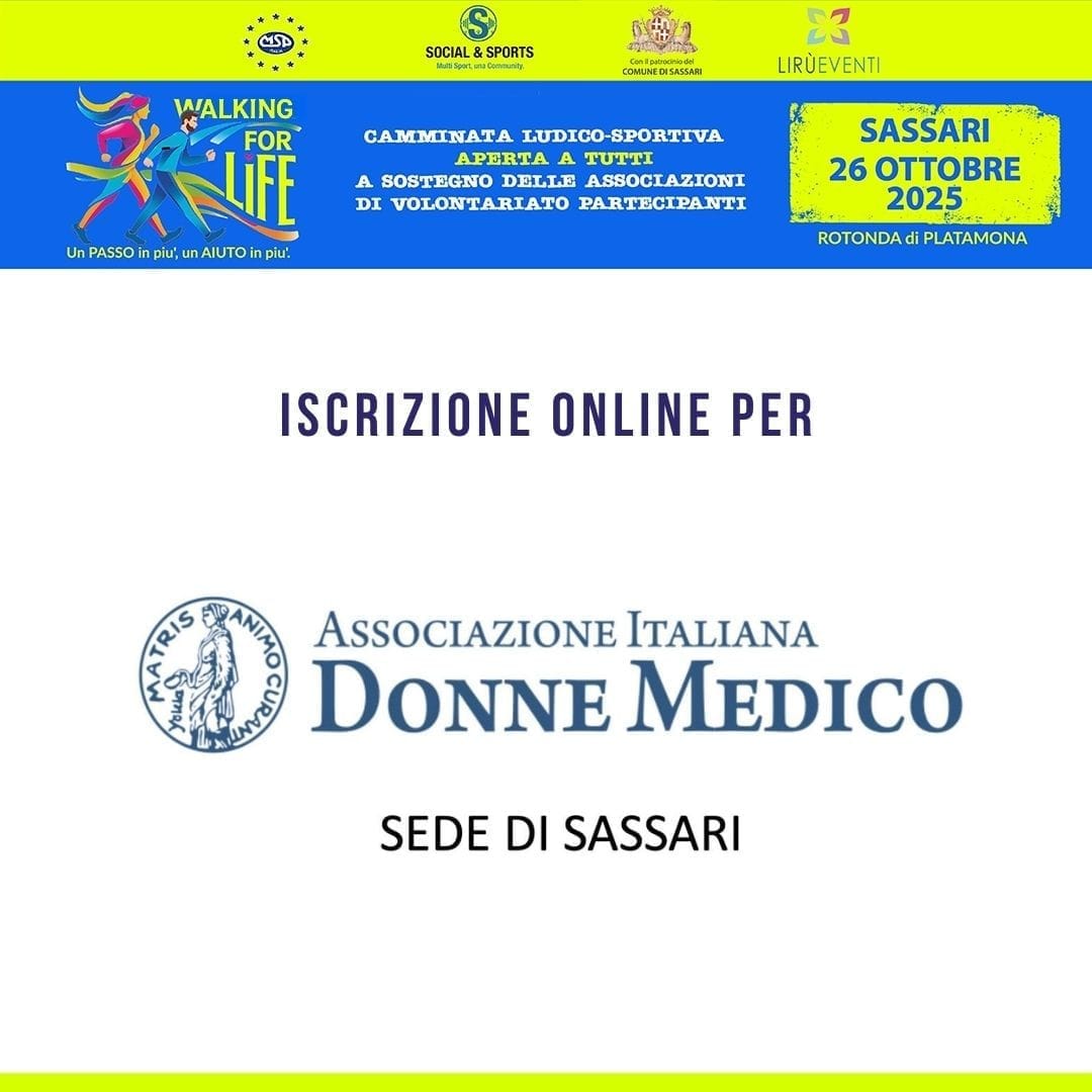 ISCRIZIONE ONLINE A SOSTEGNO DELL'ASSOCIAZIONE ITALIANA DONNE MEDICO - SEDE DI SASSARI