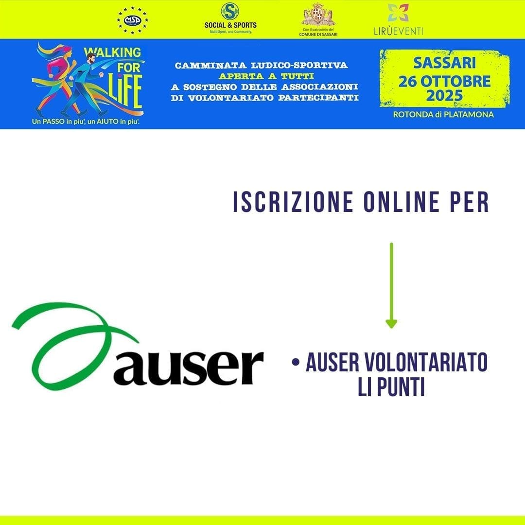 Parteciperà al "Walking For Life 2025" 𝐀𝐒𝐒𝐎𝐂𝐈𝐀𝐙𝐈𝐎𝐍𝐄 𝐃𝐈 𝐕𝐎𝐋𝐎𝐍𝐓𝐀𝐑𝐈𝐀𝐓𝐎 𝐀𝐔𝐒𝐄𝐑 𝐋𝐈 𝐏𝐔𝐍𝐓𝐈.