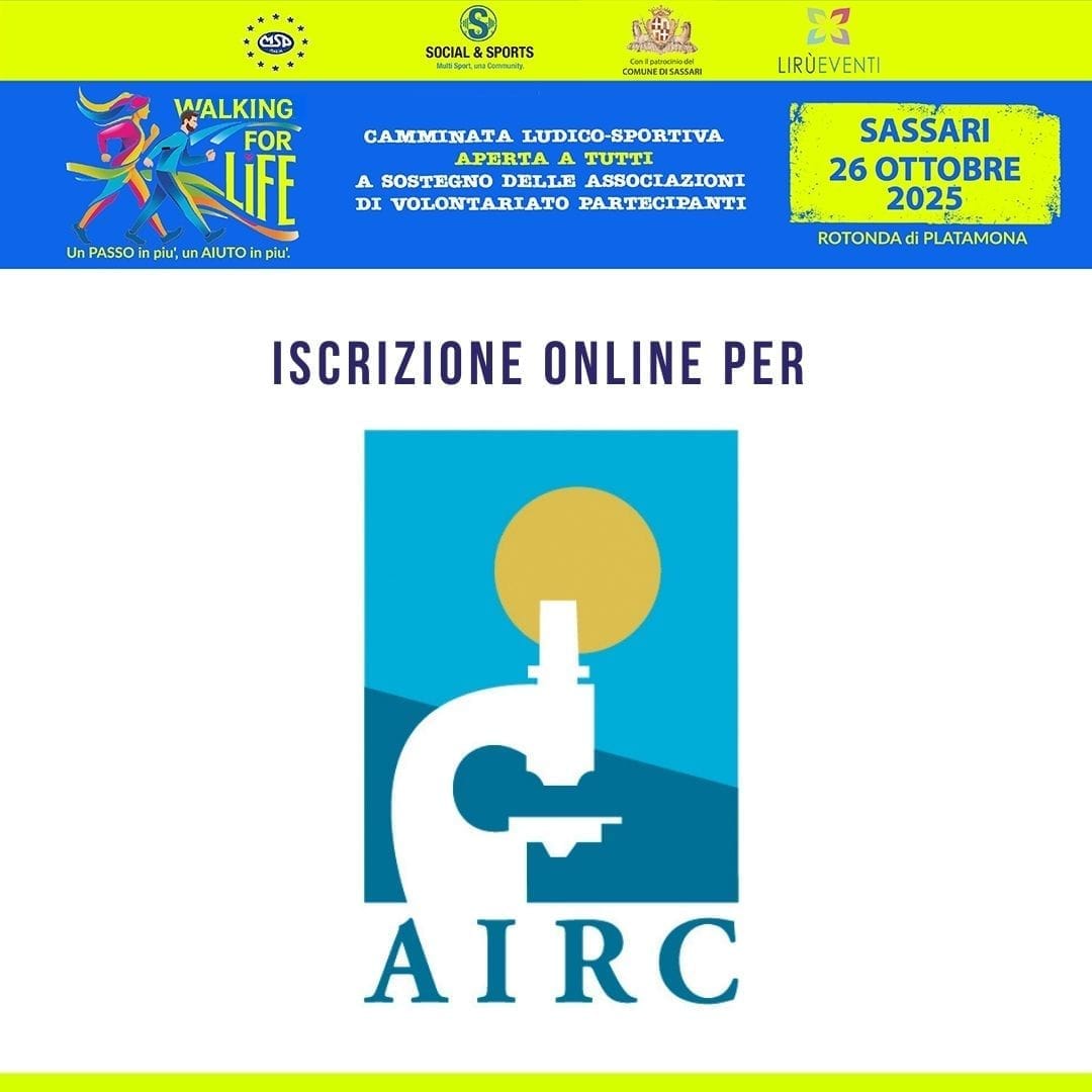 Parteciperà al "Walking For Life 2025"la 𝗙𝗢𝗡𝗗𝗔𝗭𝗜𝗢𝗡𝗘 𝗔𝗜𝗥𝗖 𝗣𝗘𝗥 𝗟𝗔 𝗥𝗜𝗖𝗘𝗥𝗖𝗔 𝗦𝗨𝗟 𝗖𝗔𝗡𝗖𝗥𝗢 𝗘𝗧𝗦