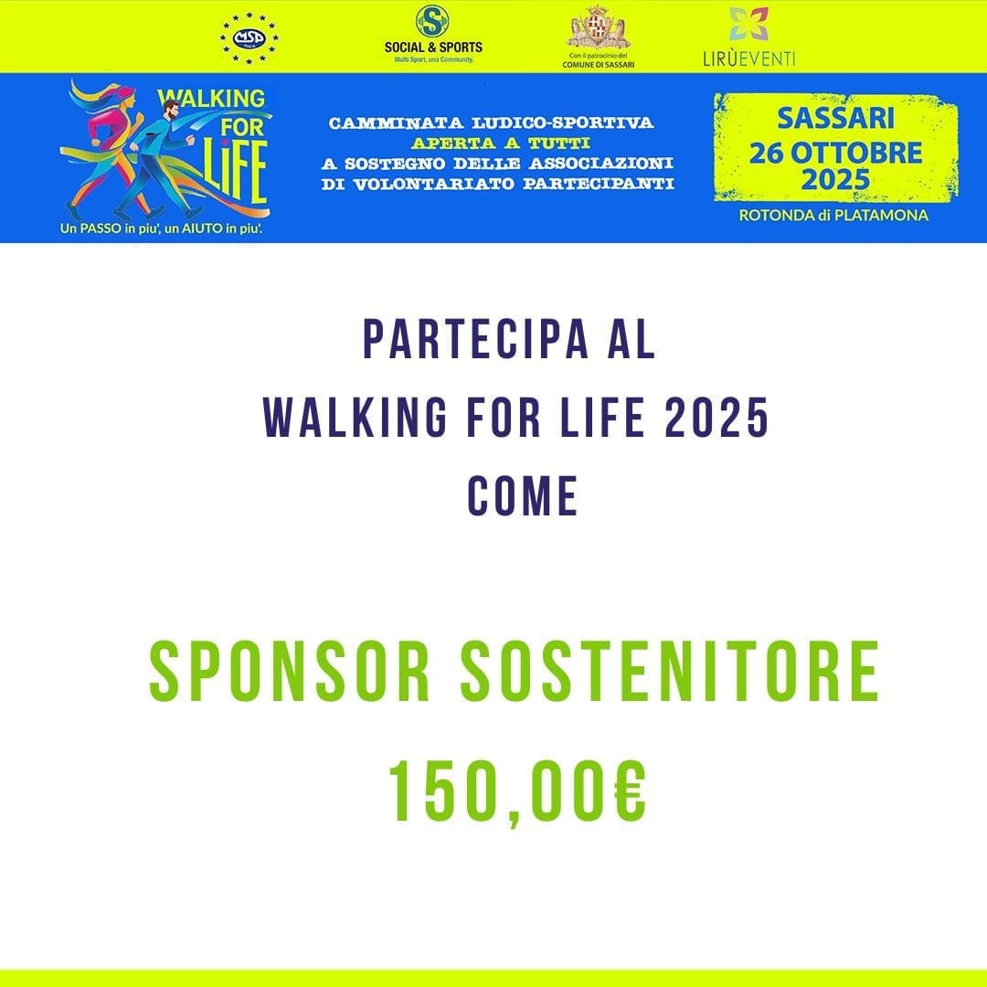 DIVENTA UNO SPONSOR SOSTENITORE DEL WALKING FOR LIFE 2025 E SOSTIENI LA TUA ASSOCIAZIONE DEL CUORE