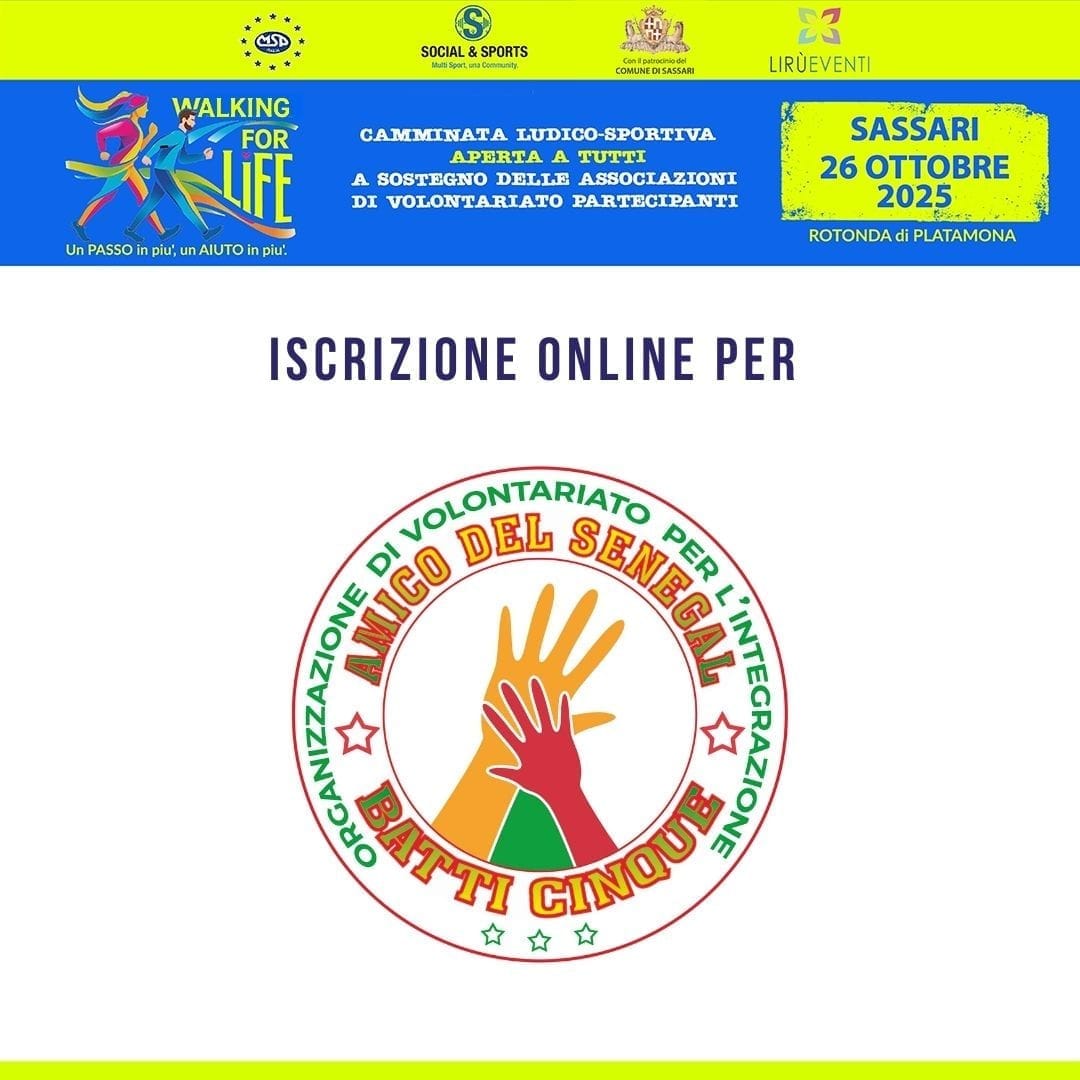 ISCRIVITI AL WALKING FOR LIFE SCEGLIENDO DI SOSTENERE L'ASSOCIAZIONE AMICO DEL SENEGAL BATTI CINQUE