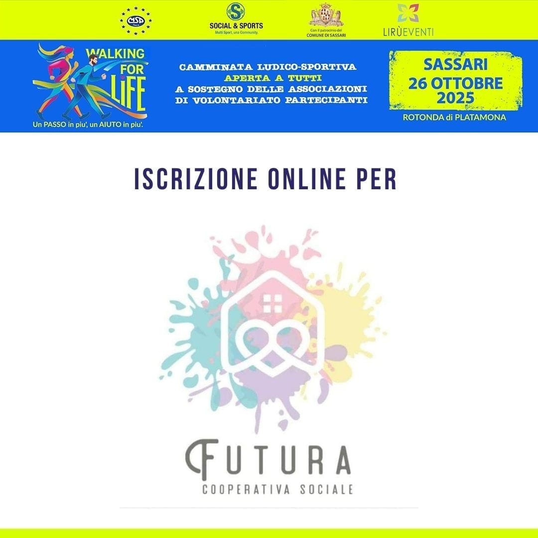 ISCRIVITI AL WALKING FOR LIFE SCEGLIENDO DI SOSTENERE LA COOPERATIVA SOCIALE ARL FUTURA