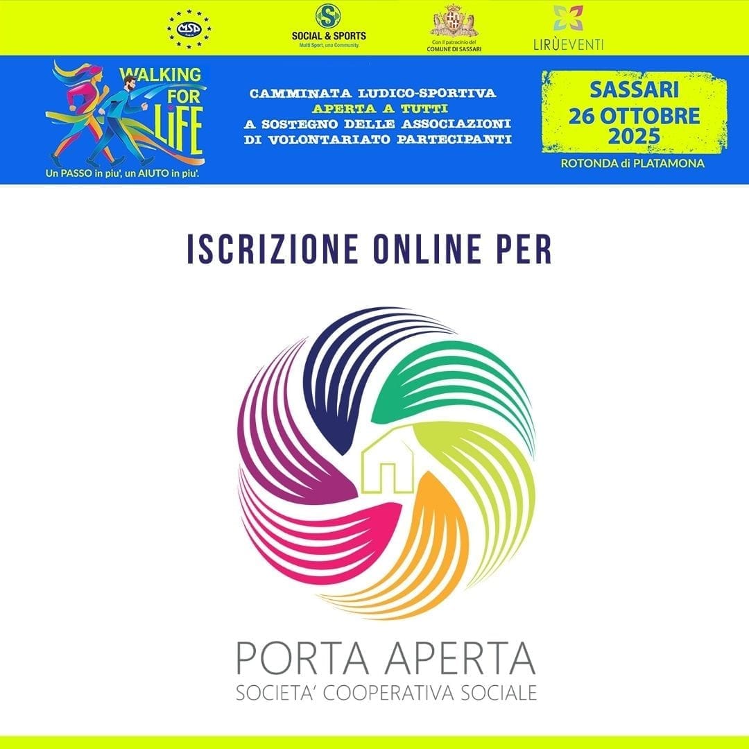 ISCRIVITI AL WALKING FOR LIFE SCEGLIENDO DI SOSTENERE LA COOPERATIVA SOCIALE PORTA APERTA