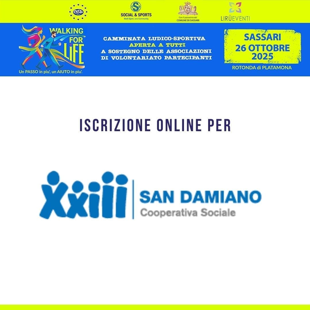 ISCRIVITI AL WALKING FOR LIFE SCEGLIENDO DI SOSTENERE LA COOPERATIVA SOCIALE SAN DAMIANO