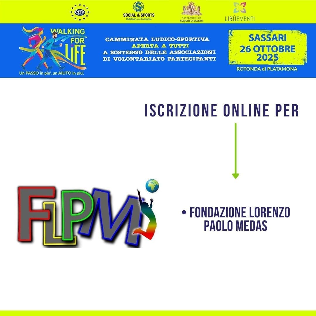 Con la tua iscrizione garantisci che parte della quota d'iscrizione (7,00€) andrà a favore della FONDAZIONE L.PAOLO MEDAS e questo consentirà la possibilità di raccogliere dei fondi per i loro scopi istituzionali.