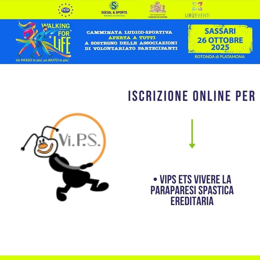 ISCRIVITI AL WALKING FOR LIFE SCEGLIENDO DI SOSTENERE "Vips ETS"